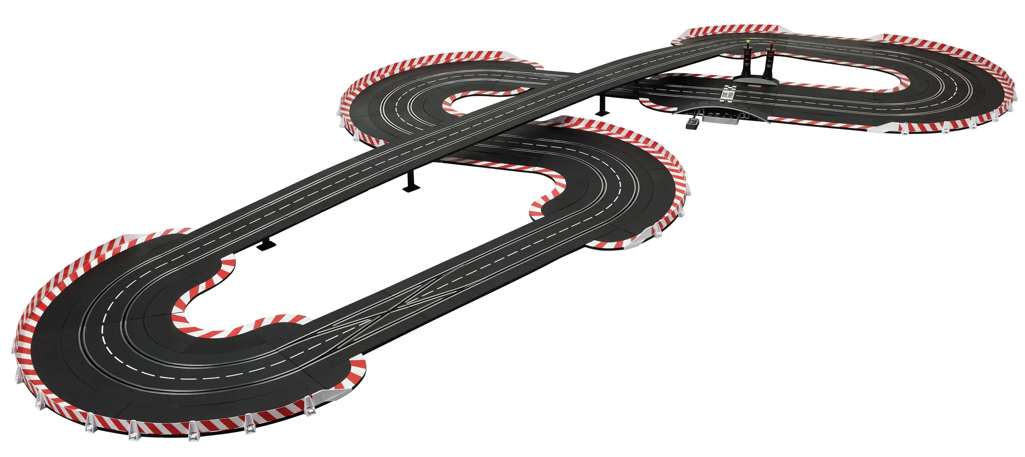 Tourenwagen Fotofinish im Maßstab 1:24! Im Carrera DIGITAL 124 „DTM Full Speed" Set geben die Tourenwagen Vollgas! Der Audi R8 LMS GT3 EVO II „Team Abt Sportsline, No.7" ist ein Traumwagen für jeden Motorsport-Interessierten. Am Steuer des Allgäuer Rennstalls saß in der DTM der ehemalige GT3-Champion Ricardo Feller. In seiner ersten DTM-Saison schaffte er direkt einen Rennerfolg in Imola. Sein Konkurrent auf der Autorennbahn ist der rot-gelbe BMW M4 GT3 „Schubert Motorsport, No.31", der Wagen des Südafrikaners Sheldon van der Linde, der in der Saison 2022 den DTM-Gesamtsieg mit diesem Fahrzeug für sich entscheiden konnte. Für ein authentisches Fahrgefühl können Geschwindigkeit und Bremsverhalten der Fahrzeuge individuell programmiert werden. Die 9,3 Meter lange Strecke mit Ghost- und Safetycar-Funktion bietet dank der Doppelweiche, den High-Speed Geraden und den Überholungen per Knopfdruck spannende Rennen am WIRELESS+ Handregler. Außerdem sind die extrabreiten Schienen perfekt für heiße Drifts mit bis zu vier Fahrzeugen geeignet.