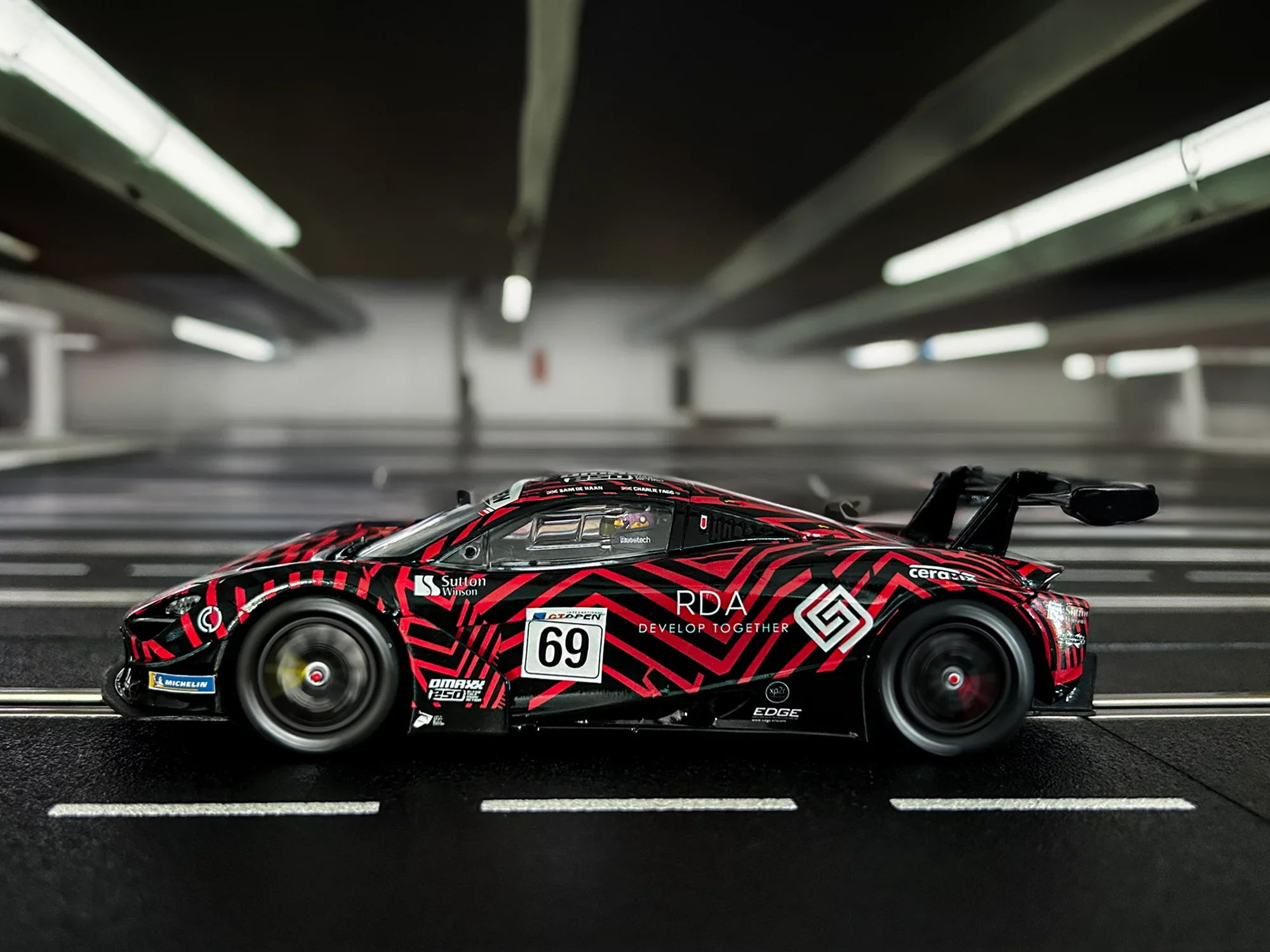Im Team Optimum Motorsport gab es 2023 Grund zum Jubeln: nach einem Urteil des Internationalen Berufungsgerichts der FIA wurden die britischen Fahrer Sam De Haan and Charlie Fagg zu den Gewinnern der International GT Open gekürt. Mit der Startnummer 69 traten die Piloten mit dem McLaren 720S GT3 an, der im Vergleich zur Straßenversion an gleich 90% aller Komponenten verändert wurde, um ihn für den Motorsport und insbesondere Langstreckenrennen zu optimieren. Das Carrera Slotcar im Maßstab 1:32 ist mit Front-, Brems- und Rücklicht ausgestattet und beeindruckt durch die Original McLaren Lizenz. Es ist individuell codier- und digital steuerbar.