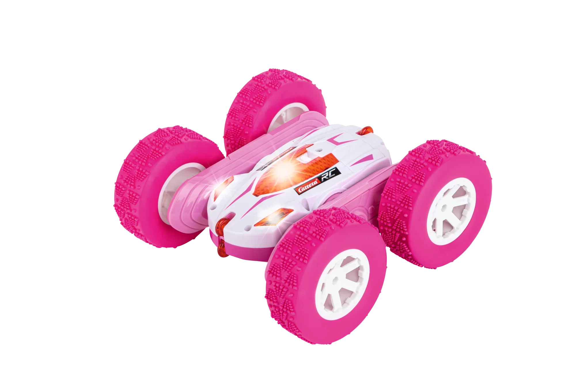 Heiße Tricks und jede Menge Stunts haben bei der Carrera RC Turnator Familie Tradition. Mit dem Carrera RC Mini Turnator in leuchtendem Pink sind diese jetzt noch auffälliger und werden zum Mittelpunkt der Stuntshow im heimischen Garten oder im Park. 360° Überschläge, Flip Action Stunts und rasante Drehungen, die richtig Staub aufwirbeln, sind dabei seine leichtesten Übungen. Der kompakte Turnator passt mit einer Länge von ca. 16 cm bequem in den Rucksack und ist dank Li-Ion Akku mit einer Fahrzeit von bis zu 15 Minuten immer bereit für seinen Einsatz. Dank 2,4 GHz Funktechnologie zeigt er zusammen mit bis zu 15 weiteren Fahrzeugen seine coolen Tricks und scheut sich dabei nicht, gegen seine Brüder anzutreten.