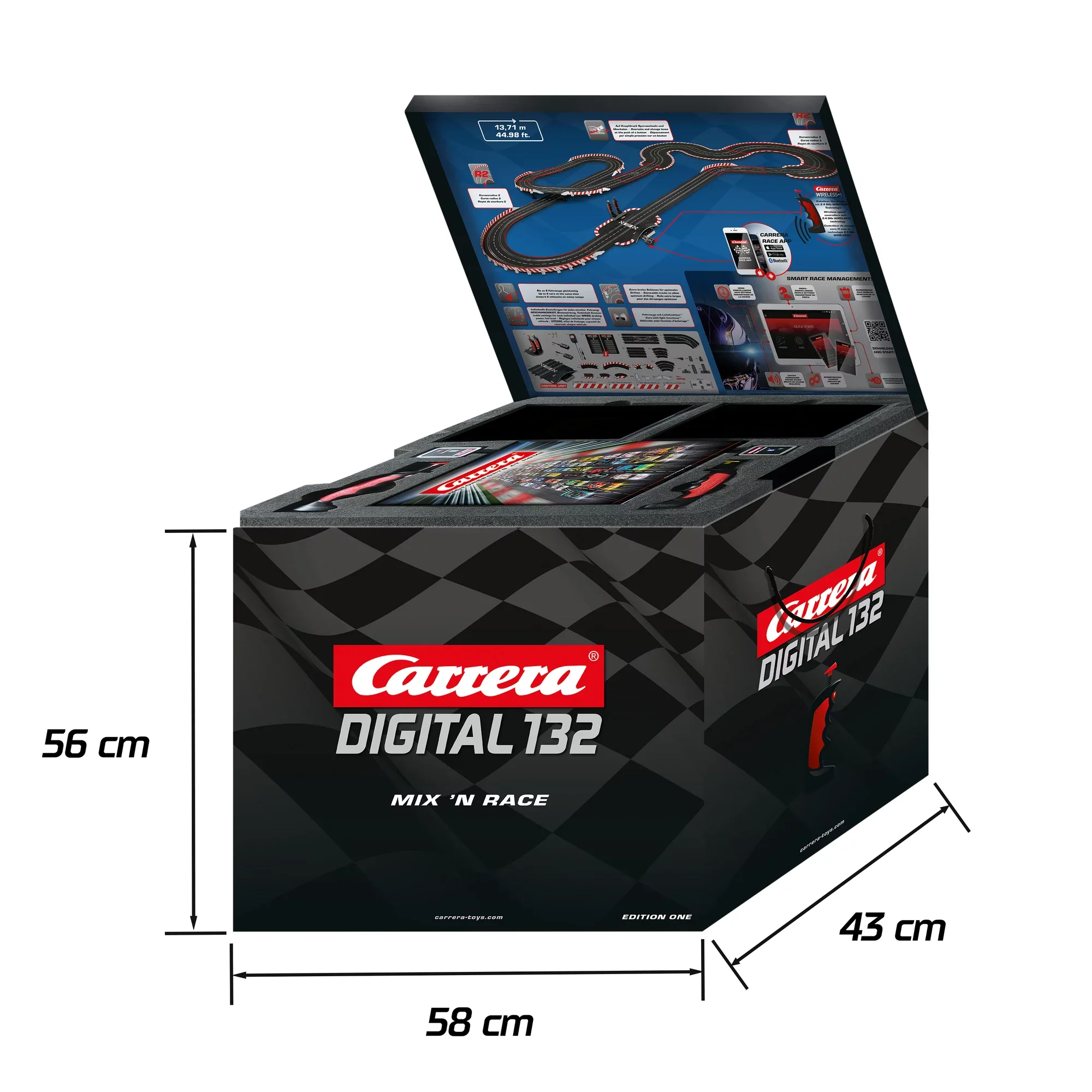 Erlebe echtes Rennfeeling: Das brandneue Mix 'n Race Edition One ist im Maßstab 1:32 ab sofort im Online-Shop erhältlich und begeistert dabei mit zwei frei wählbaren Autos, einem gigantischen Strecken-Layout mit einer Gesamtlänge von 13,71 Metern und jeder Menge Zubehör.